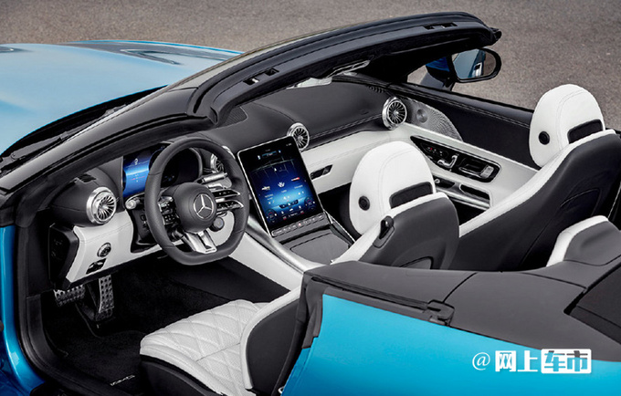 外观上,梅赛德斯-AMG全新SL 43车型采用双门敞篷设计,整体造型与AMG SL其他两款车型基本一致,轮毂提供了19、20、21英寸三种规格可选,车身整体造型运动感十足。内饰上,新车采用了与奔驰S级相同的设计理念,配备最新的纵向触控屏,中控台布局简约,黑白双色内饰提升了新车的豪华氛围。