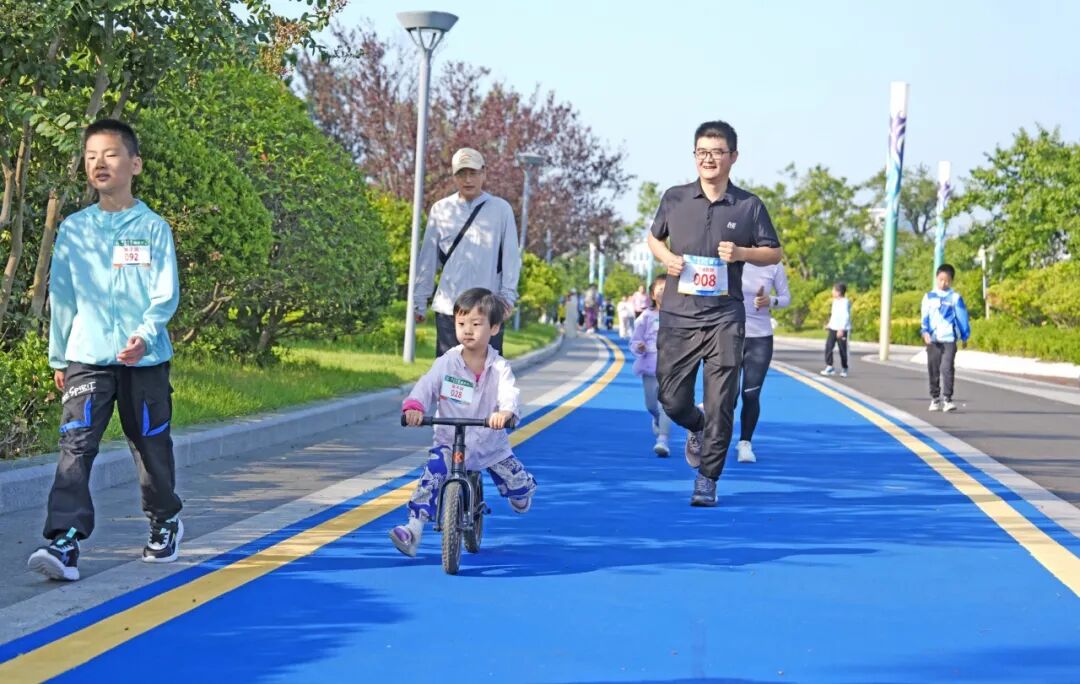 早上8点,小朋友们牵着爸爸妈妈的手,大朋友们摩拳擦掌,跃跃欲试,发令枪一响,大家一起迎着朝阳奔跑,跑进阳光里,跑进大自然中。