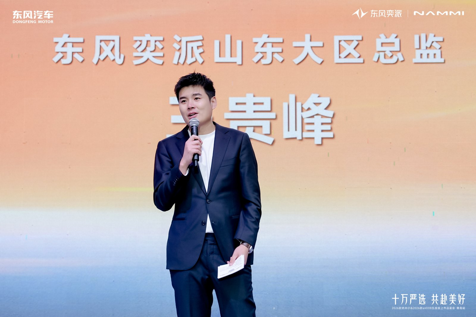 东风奕派营销事业部山东大区总监王贵峰先生在致辞中表示:“青岛是浪漫的岛城,而2026款纳米01与eπ008五座版是东风奕派‘科技跃迁、面向用户’战略的具象化成果。我们希望通过这两款车,让汽车不止是交通工具,更成为用户探索生活、演绎人生故事的移动舞台。”