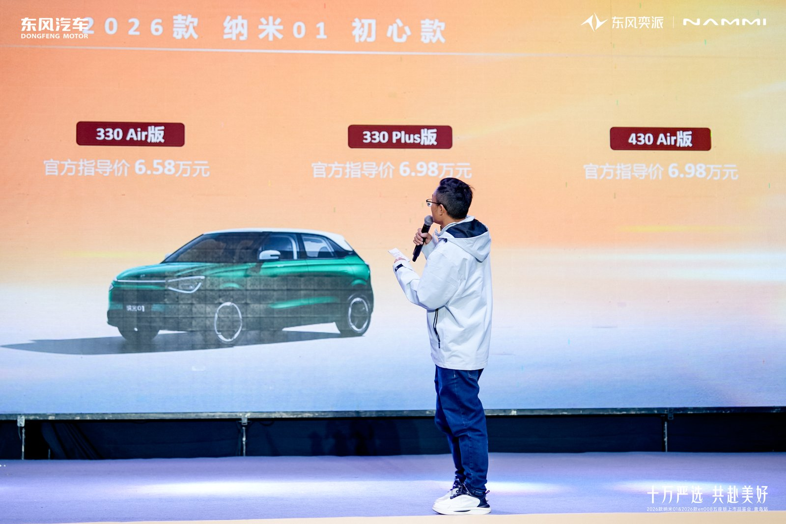此次上市,两款新车的价格与限时权益成为最大亮点。据现场公布,2026款纳米01分为“初心款”与“挚爱款”八大配置,限时焕新指导价5.88万元起——其中330Fly版仅需5.88万,标配无框车门、S级怀挡等越级配置;430Ultra版限时8.88万,搭载FAPA融合泊车、循迹倒车等智能功能。同时,12月31日前订车用户可享初心款1000元、挚爱款4000元限时焕新礼,叠加安心礼、金融礼等七重福利,进一步降低购车门槛。