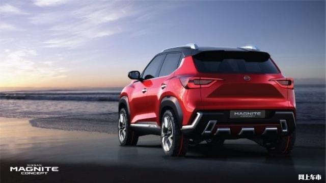 近日海外媒体曝光一组日产全新SUV概念车官图,新车将命名为Nissan Magnite Concept,其量产版车型计划于今年年内正式亮相,并有望在2021年上市开售。据悉新车代号为EM2,并转为印度市场所打造,或将定位为小型SUV,与本田缤智、丰田C-HR等车型同级。动力方面,新车将搭载1.0L以及1.0T两种动力,传动系统分别匹配5速手动以及CVT变速箱。配置方面,新车提供了8.0英寸触摸屏、车载互联、360度摄像头、巡航控制系统、自动空调控制系统和多功能方向盘等实用性配置。
