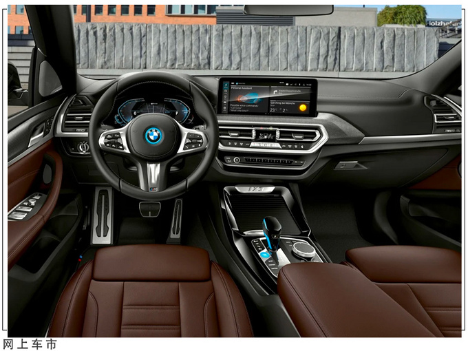 内饰方面,全新iX3换装了尺寸更大的12.3英寸悬浮式液晶中控屏幕,同时中控布局有所优化,在更加简洁的同时更符合人机工程学操作。此外,该车配备有全液晶仪表、M系列三辐式多功能方向盘,并提供了方向盘加热功能。中控台下方配备了全新造型的电子式换挡机构,且提供了座椅加热等多项配置。