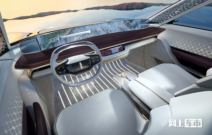 由于林肯全新概念车采用纯电驱动,新车配备了前备箱,同时前备箱的开启方式也十分独特,中网可向前拉出,更方便装载行李货物。车内部分,新车与大多数概念车一样设计极简,贯穿式大屏与奔驰EQ系列大屏有些相似,车内座椅可进行旋转,车内用料采用更加环保的材质打造,同时新车还提供了三种氛围模式,通过氛围灯、香氛系统以及屏幕画面可营造出Coastal Morning、Mindful Vitality、Evening Chill三种模式。
