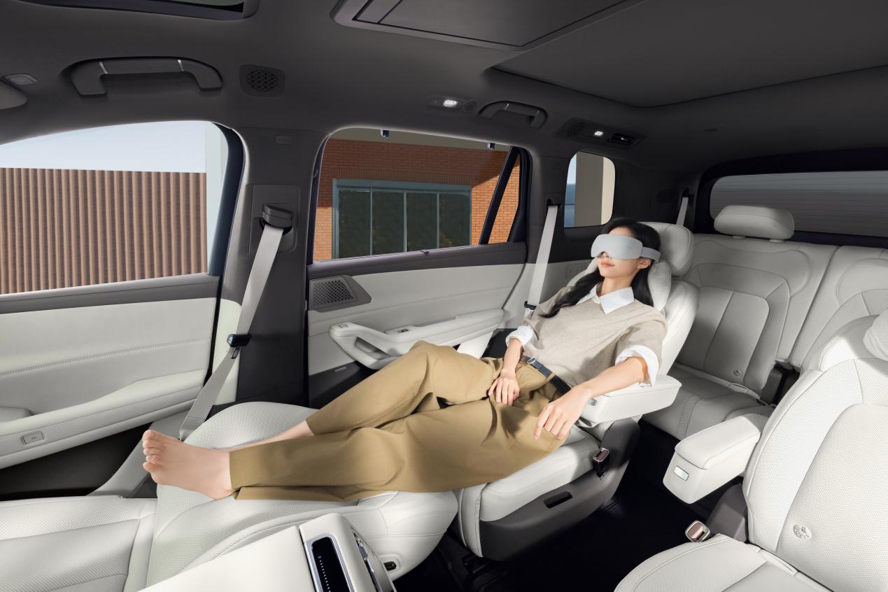 针对家庭出行需求,腾势N8L空间表现全面领先,腿部空间、肩部空间、头部空间,都优于同级竞品。特别是第三排,座椅一样宽大柔软,配备座椅加热和独立空调出风口,可支持角度调节,还可前后滑移100mm,同级唯一。