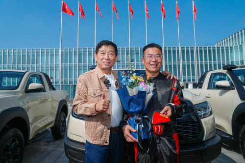 9月,赛级皮卡V6火炮首批车主交车仪式在长城汽车技术中心举行,长城汽车董事长魏建军兑现承诺,亲自为首批车主交车,并为V6火炮阿拉善英雄会出征仪式授旗。这场交车,不只是一次仪式,更是一场“交底”,也是一次“交心”。交出的是V6火炮赛道淬炼的真实力,是“以赛验车”“以赛促研”的硬核开发理念,是赛事共创的开放生态,也是越野精神的交托与传承。