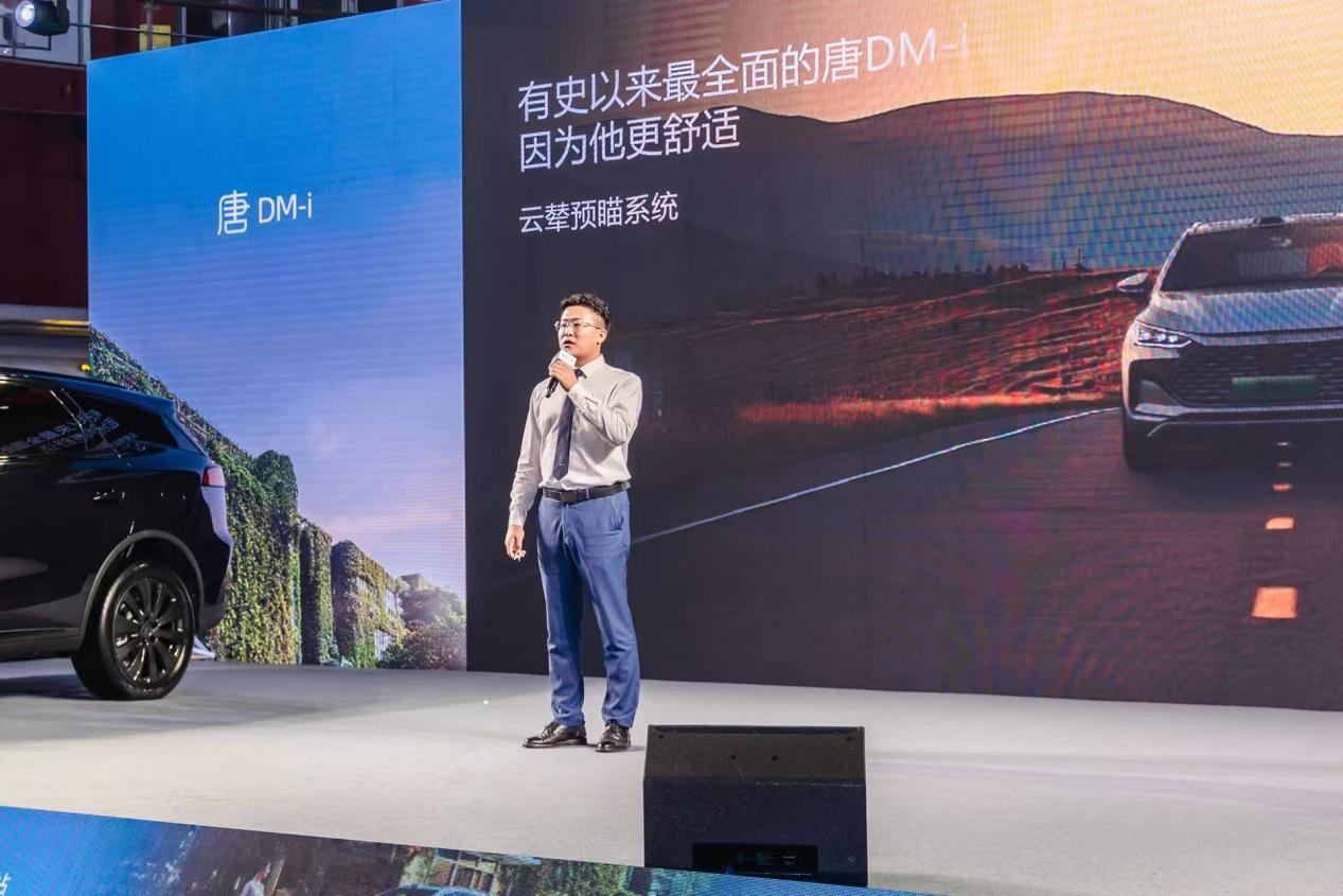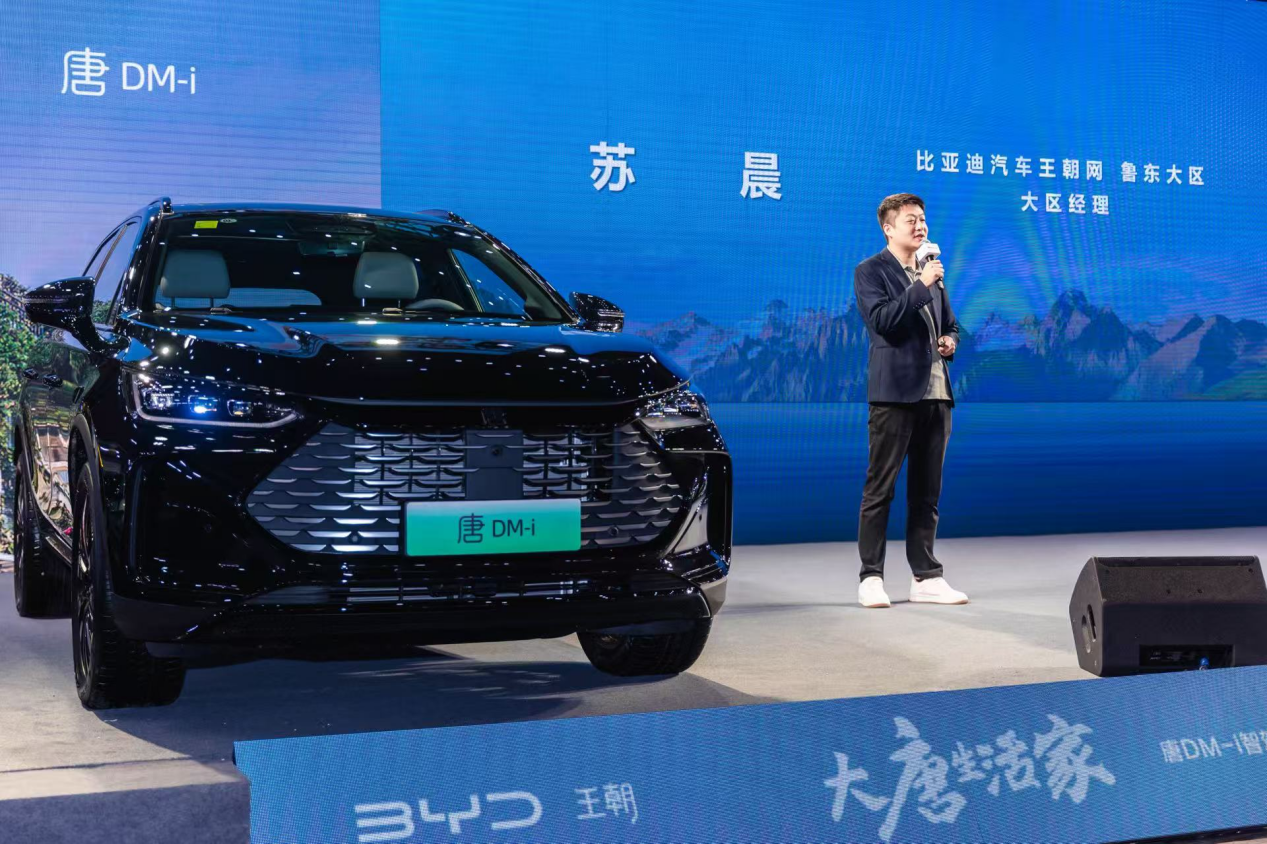 随后,比亚迪汽车王朝网鲁东大区大区经理苏晨登台致辞,深刻阐述了唐DM-i的旗舰内涵,他表示:“一辆优秀的车,不仅仅是出行的工具,更应是美好生活的承载者与创造者。正是基于这样的洞察,我们带来了全新升级的唐DM-i。它所倡导的‘大唐生活家’理念,既能‘灵活百变’,也能‘性能满格’”。