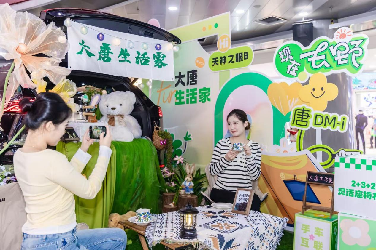 沉浸式品鉴,解锁“空间魔力”;活动伊始,精心设置的静态品鉴区便成为焦点。现场迪粉在专业礼仪的引导下,零距离感受汉唐的匠心设计与“灵活百变”的空间哲学。尤为引人注目的是唐DM-i尾箱场景化布置区域,巧妙演绎了从日常通勤到周末露营的多变场景,生动诠释了“一车搞定,解锁更多场景”的产品理念,让每位到场者直观感知到其作为“移动生活空间”的无限可能。大七座让全家出游一车搞定,出行更有温度。第三排放倒,后备箱容积可达到940L,轻松将露营装备,行李箱带到身边。第二排及第三排放倒,可放下一张2.1米大床,轻松实现星空露营。第二排及第三排放倒,超大空间,乔居搬家一车搞定。感兴趣的迪粉纷纷到车内感受空间魅力,打卡拍照,对唐DM-i的空间魔法给予好评。