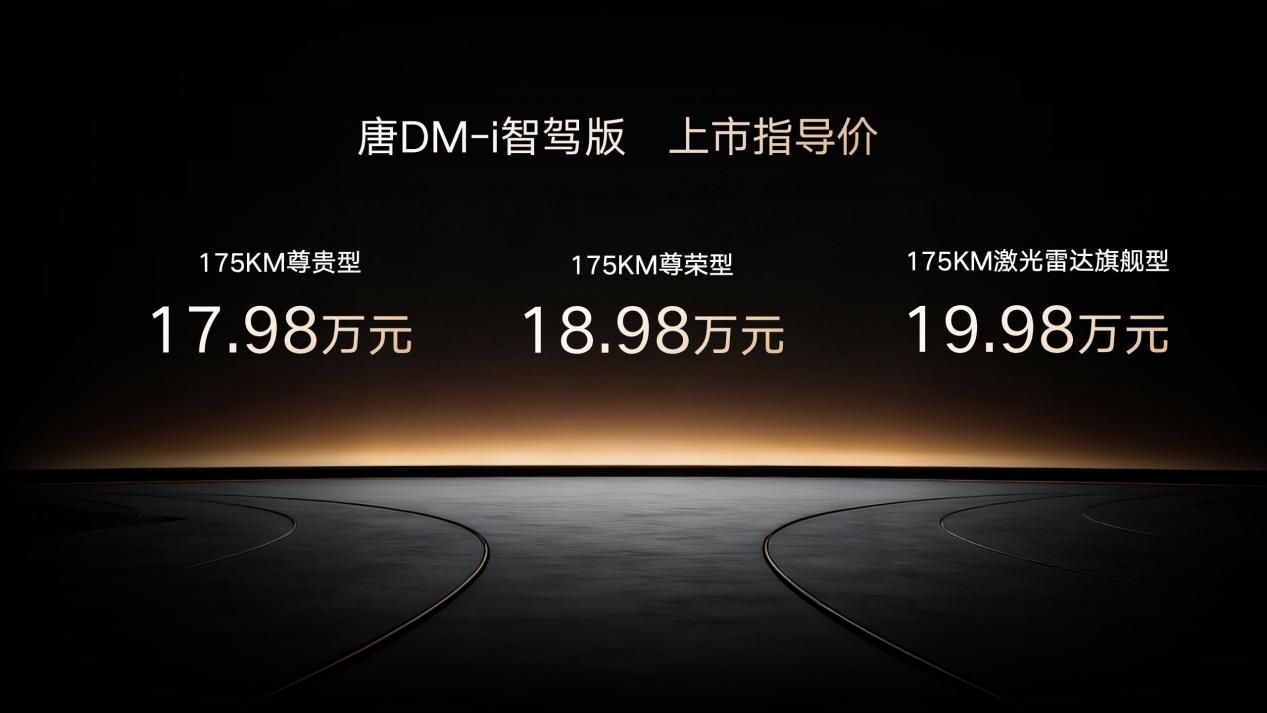 紧接着,备受瞩目的购车价格与政策正式公布,唐DM-i智驾版175km长续航版售价仅17.98万元起,同时对于一直热销的唐DM-i智驾版115KM尊贵型,也特别推出金秋限时礼遇,它的限时优惠价格为16.98万元!诚意十足的上市权益将活动推向了新一轮高潮。