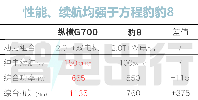 性能层面,纵横G700的混动系统可不简单,总功率665kW,扭矩1135N·m,零百加速4.6秒。跟竞品比,坦克500 Hi4-Z是4.3秒,方程豹豹8是4.8秒,大家都在一个水平线上。但它有个行业首创的内高压一体式大梁,配上空气悬架和三把锁,过烂路手拿把攥。发动机、变速箱这些核心部件防水等级IP68,能在水里泡俩小时,涉水深度97厘米,通过性比竞品强不少。