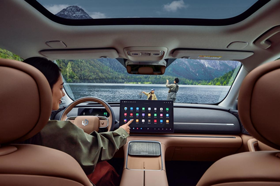 智能座舱高阶版- DiLink 100系统为核心,15.6英寸悬浮 Pad支持四音区语音交互,配合26英寸W-HUD抬头显示,驾驶信息覆盖全面。