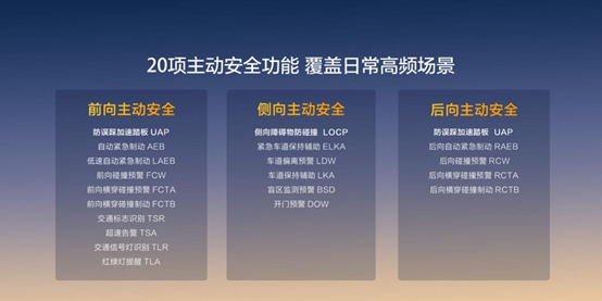 海狮06EV全系搭载“天神之眼C -智能辅助驾驶三目版(DiPilot 100),由12个摄像头+ 5个毫米波雷达+ 12个超声波雷达组成,全车共29个传感器,实现全方位环境感知。