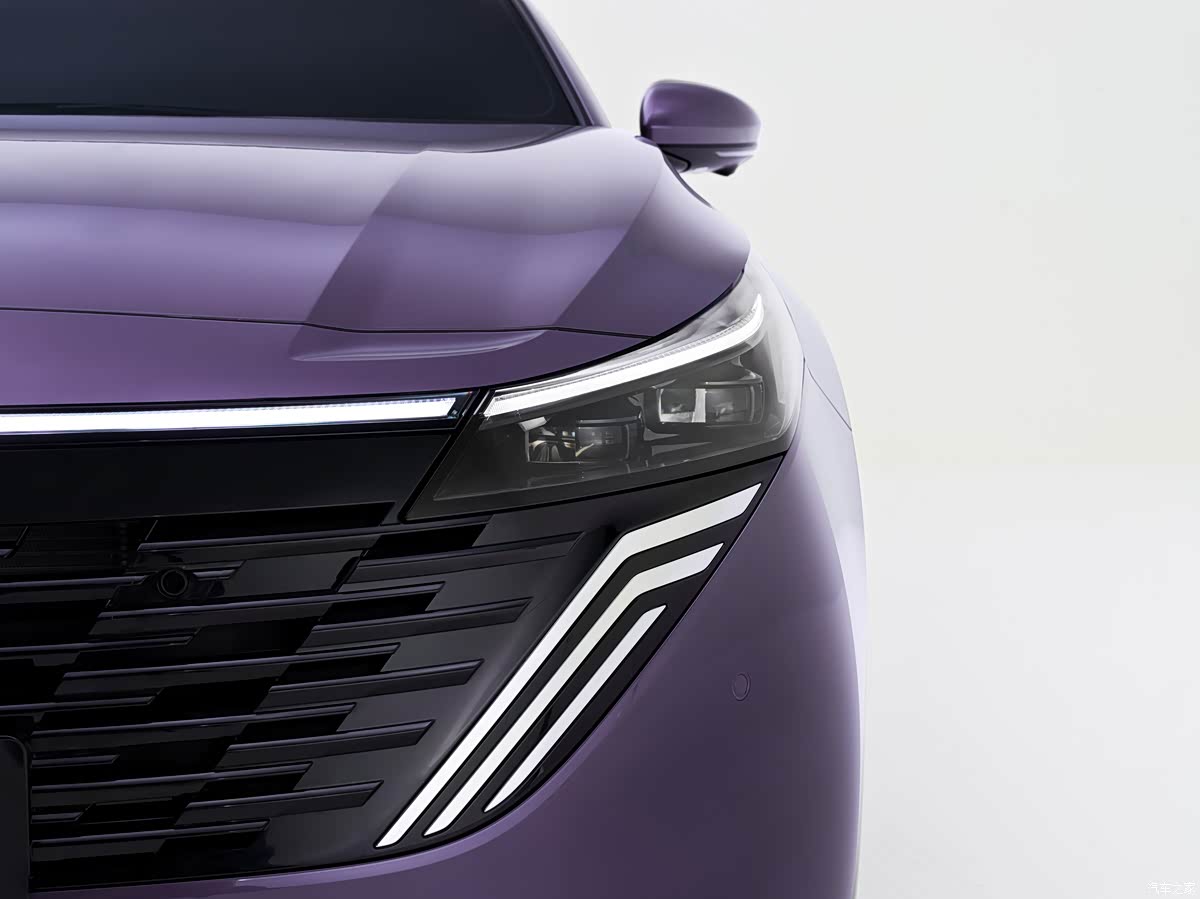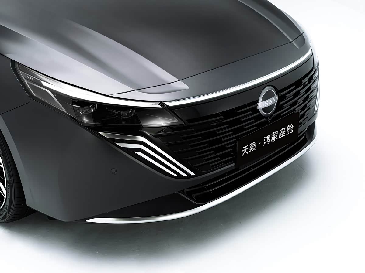 回顾外观方面,天籁·鸿蒙座舱车头焕然一新,新车采用V-Motion家族经典语言设计,车头进行了黑化设计,进一步扩大“V”型开口,呈现雄鹰伸展宽厚翅膀的气势。新的寰宇双子星LED大灯与黑色中网融为一体,格栅样式焕然一新,格栅饰条长短相间,好似羽毛设计,一体化进气格栅将灯组及雷达隐藏式布局。大灯最远照射距离230米。前保险杠也实现一体化设计,有助于降低风噪。