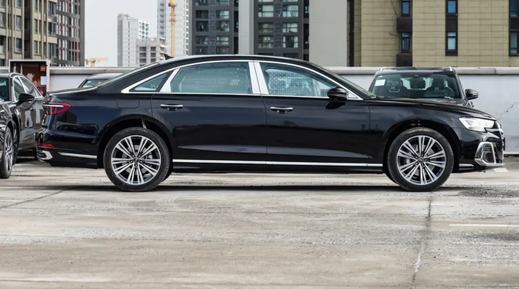 侧面和尾部来看奥迪A8L更像一台低调的D级车,所以网友都说能开奥迪A8L的老板都是低调的老板。车身轮廓延续德系车的风格,双腰线的设计较为笔直,并使用大量的镀铬条装饰,20英寸的轮毂也点缀了侧面的运动感,从而提升通过性。尾部要是没A8L的标签,很多人都以为是奥迪A6L,两车之间的尾部设计都相同,同样采用贯穿式尾灯设计并用镀铬条点缀中间。我觉得奥迪A8L的气场还是有的,毕竟尺寸来到5320*1945*1488毫米,轴距为3128毫米。如果将前排调好位置,后排乘坐1.78高个子也能轻松翘起二郎腿,甚至该可以葛优躺,宽敞的后排空间也让长途乘坐不感到局促。顶配车型后排还有小桌板、车载冰箱、酒杯储物空间、娱乐屏以及座椅按摩通风等,关键它的多层隔音玻璃还配隐私遮阳帘。