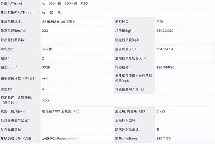 长5064mm,宽2004mm,高1790mm,轴距3025mm。跟现款比,长度多了一丢丢(1毫米?忽略不计),高度变了点,估计是轮毂或者行李架的差异。