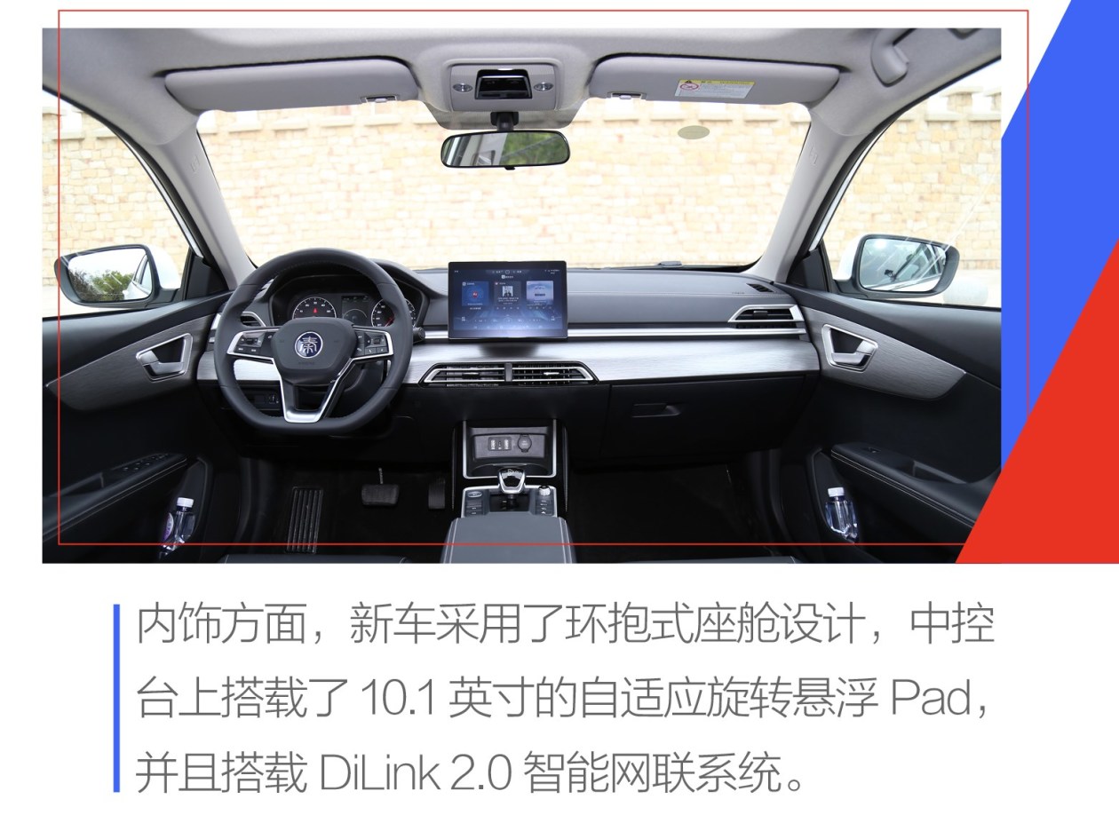 内饰方面,新车内饰采用了环抱式座舱设计,中控台搭载了10.1英寸自适应旋转大屏,并且配备了DiLink 2.0智能网联系统,支持智能语音识别,蓝牙钥匙及整车OTA在线升级。新车使用了双缝线皮质全贴合座椅,以提升车内整体的品质感。
