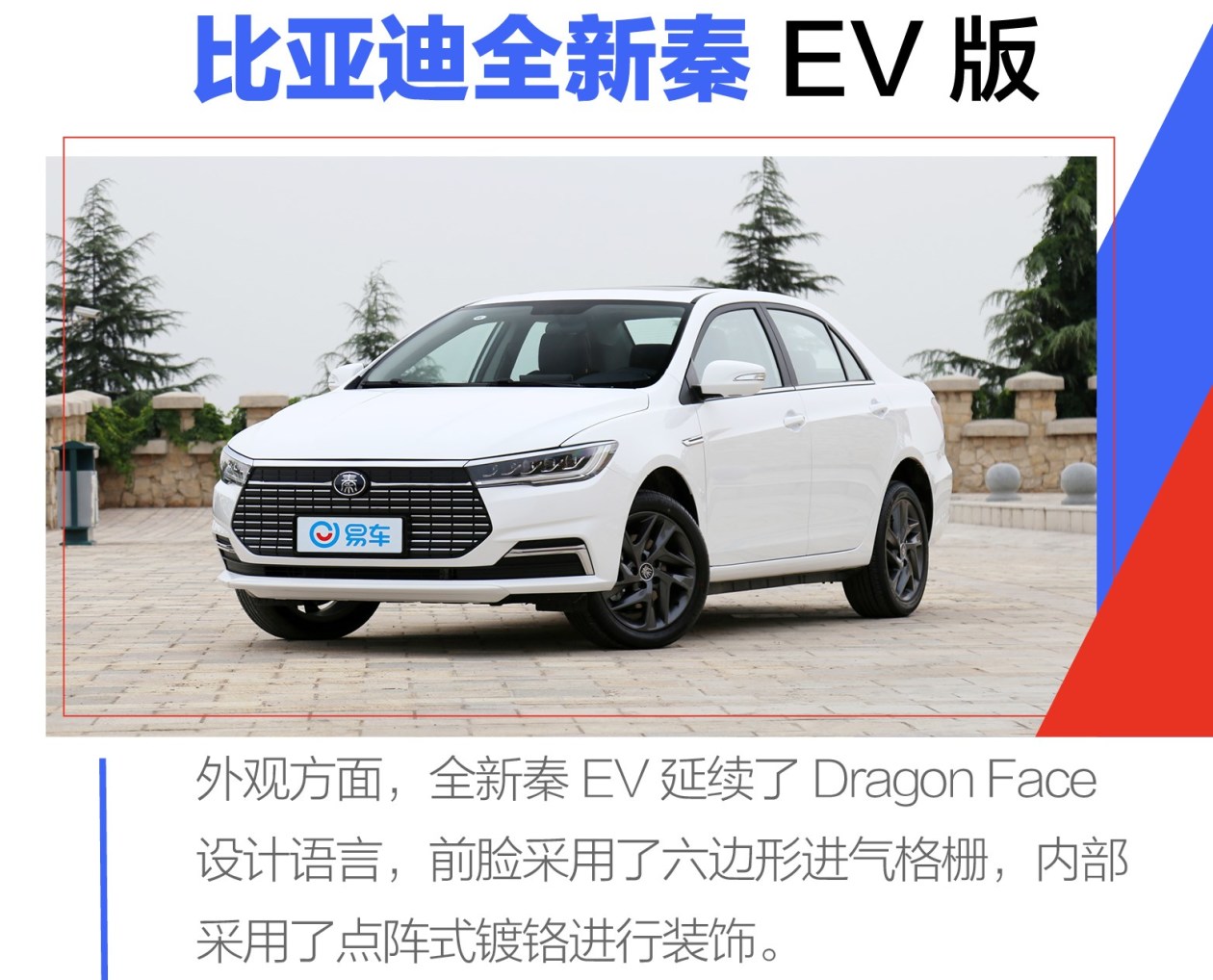 外观方面,全新秦EV(购车享优惠)延续了Dragon Face设计语言,前脸采用了六边形进气格栅,内部采用了点阵式镀铬进行装饰。前大灯组造型修长,并采用了全LED灯作为光源,辨识度高。尾部营造出较强的立体感,并配备了LED尾灯和动态流水转向灯。